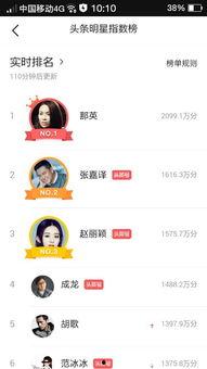 首先,得先弄清楚这个“头条明星指数”是个啥玩意儿。简单来说,它就是衡量一个明星在互联网上热度、影响力的一种指数。这个指数会根据明星的微博、抖音、微博热搜、新闻曝光度等多个维度来计算,可以说是娱乐圈的“人气风向标”了。